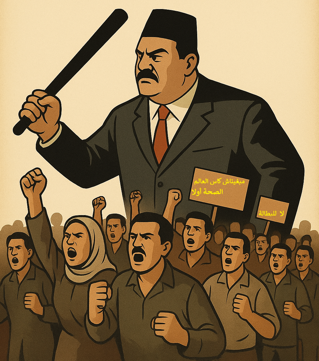 دون لبس بعد تمرير القانون التكبيلي للإضراب ، سيعملون على تفكيك الحماية الاجتماعية ، وسيحكمون على من أفنى عمره في العمل، و أثرى طبقتهم البورجوازية، بالبؤس في شيخوختة، وسيواصلون ما بدأوه من تدمير للتعليم والصحة العموميين وقد سموا ذلك مدا إصلاحيا. سيواصلون الاستحواذ على الموارد المائية والطبيعية. فلا إجراءات في قانون المالية لفائدة الشباب تهم المعطلين ولا الشباب الطلابي. وطبعا سيواصلون التطبيع وفتح البلاد للرأسمال الأجنبي والخوصصة وتقاسم مغانم المونديال، بينما سيلقى بالفتات على أرصفة بعض المدن وبعض الشجيرات والكراسي.