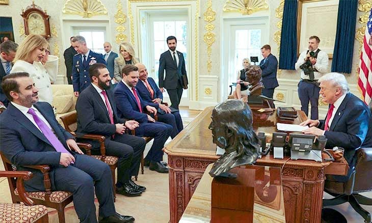 وبمجرّد قول «عقارات»، يخطر دونالد ترامب وعائلته وأعوانه تلقائياً على البال، حيث إنها إدارة أمريكية تتميّز بطغيان المضاربة العقارية في تحديد سلوكها العام. وقد أدرك الشرع الأمر، إذ لوّح بترحيبه بتشييد «برج ترامب» في دمشق عندما كانت المساعي جارية لترتيب لقاء بينه والرئيس الأمريكي عند زيارة هذا الأخير للمملكة السعودية في أيار/ مايو الماضي. ولا شك في أن أفق الاستفادة من سوق الإعمار السورية، على الرغم من أنها لا تزال افتراضية للغاية، له دور هام في موقف الرئيس الأمريكي. والأمر ذاته ينطبق على الدول الأوروبية، ومنها فرنسا التي يسعى رئيسها إيمانويل ماكرون إلى تقليد أسلافه في محاولة اقتطاع حصة من الكعكة الاقتصادية العربية (جذب دولارات النفط والغاز، الحصول على عقود البناء، تصدير الأسلحة، إلخ) بانتهاج سياسة أقرب إلى الإجماع العربي الرسمي مما هي سياسة واشنطن. وقد أسرع ماكرون لاستقبال الشرع في قصر الإليزيه قبل لقاء الزعيم السوري بترامب في الرياض.