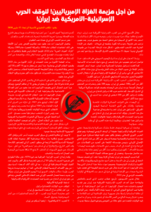 وكما رأينا في الحرب الإيرانية -العراقية بعد ثورة 1979، فإن حالة الطوارئ التي تفرضها الحروب لا يمكنها الا أن تسحق المعارضة بشكل أكبر. واليوم، تعد القوى المؤيدة للديمقراطية في إيران – بما في ذلك آلاف السجناء السياسيين – من بين الأهداف الرئيسية للنظام الإسلامي، كما أن حياتهم مهددة بذريعة الحرب. ولهذا، نطالب بالوقف الفوري لهذا الهجوم الإمبريالي على إيران، ونؤكد من جديد دعمنا لنضال الشعب الإيراني ضد النظام الإسلامي القمعي، وندافع عن حق إيران في الدفاع عن نفسها ضد العصابات الأمريكية والإسرائيلية.