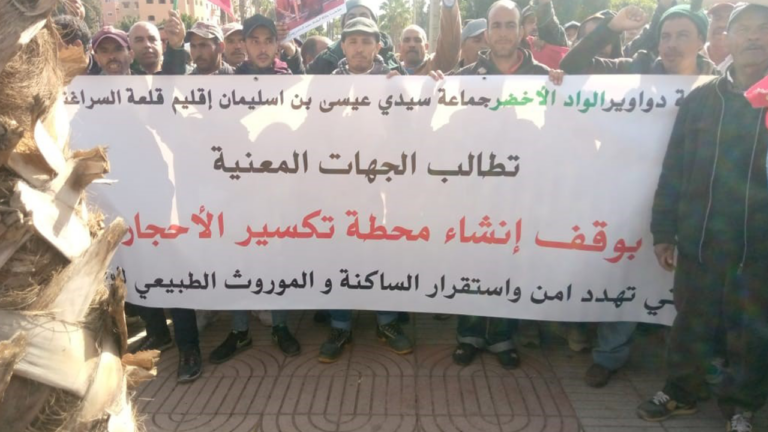 نضال سكان دواوير الواد الأخضر بجماعة سيدي عيسى بن سليمان ضد مشروع مقلع الرمال وتكسير الحجارة
